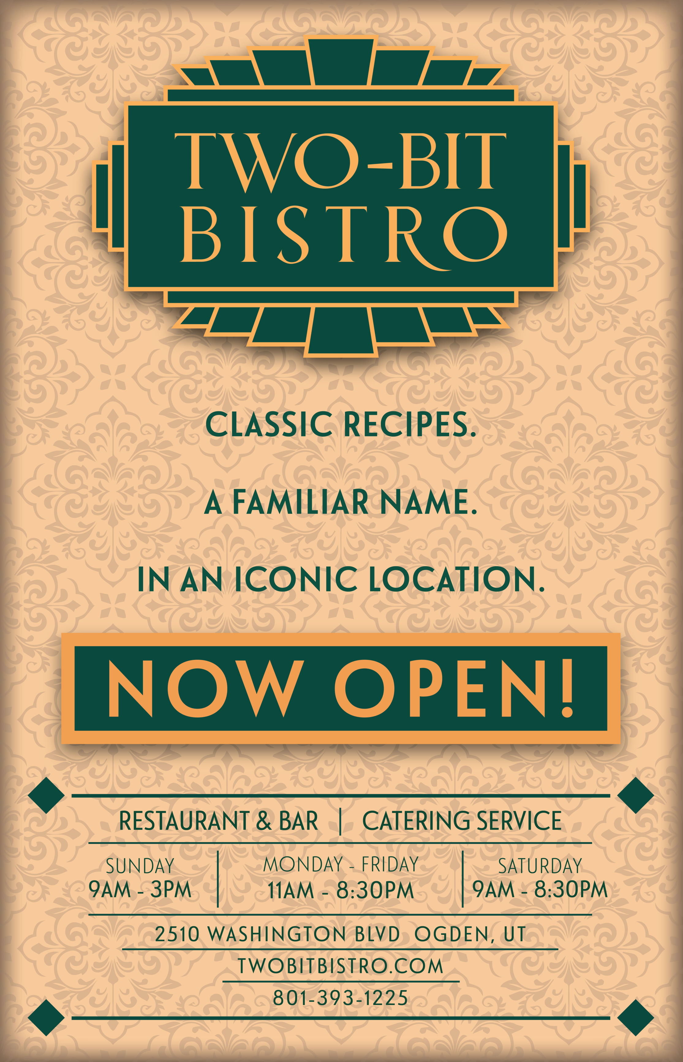 Tucked into the heart of vibrant Ogden, Two-Bit Bistro is excited to welcome back longtime guests, residents, and first-time visitors to our brand new location on the corner of the Bigelow.